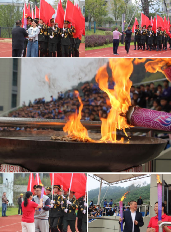 當(dāng)星星運(yùn)動(dòng)之火在田徑場(chǎng)上點(diǎn)燃時(shí),現(xiàn)場(chǎng)歡呼一片。火炬由優(yōu)秀師生代表余志江、劉利寧、余艷蓉、徐國(guó)勤、毛麗雯、江日群、邵曉娟7位老師和潘晨瀾、傅利雅、葉誠(chéng)3位學(xué)生以及優(yōu)秀校聘員工胡雄明共11位師生共同完成接力。這不僅是簡(jiǎn)單的火炬交接,它是前輩教師的標(biāo)桿示范,是新生力量的青春活力,是衢旅精神“坤德含弘 匠心善美”的傳遞。當(dāng)曾福田校長(zhǎng)點(diǎn)燃衢旅校運(yùn)會(huì)的“圣火”盆時(shí),標(biāo)志著在這場(chǎng)盛會(huì)中,每個(gè)青春應(yīng)當(dāng)“燃”不讓!