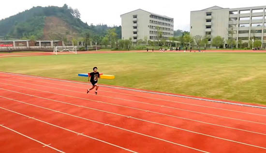 4×100米接力現場,怎么只有一個運動員在跑?因為對手已經被他甩出屏幕畫面之外了!這就是2102班打破紀錄的最后一棒!