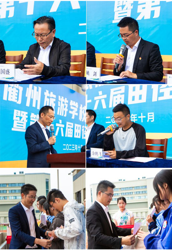 10月13日,浙江省衢州旅游學校第十六屆田徑運動會圓滿落幕!閉幕式上,校長助理嚴久官宣布開幕式表演創新獎名單,副校長姚劍宣布道德風尚獎以及優秀宣傳班級名單,副校長吳國盛宣布運動會團體總分成績,副總裁判長余鵬飛宣布破紀錄學生名單,校長助理兼教務處主任江小三致閉幕辭。