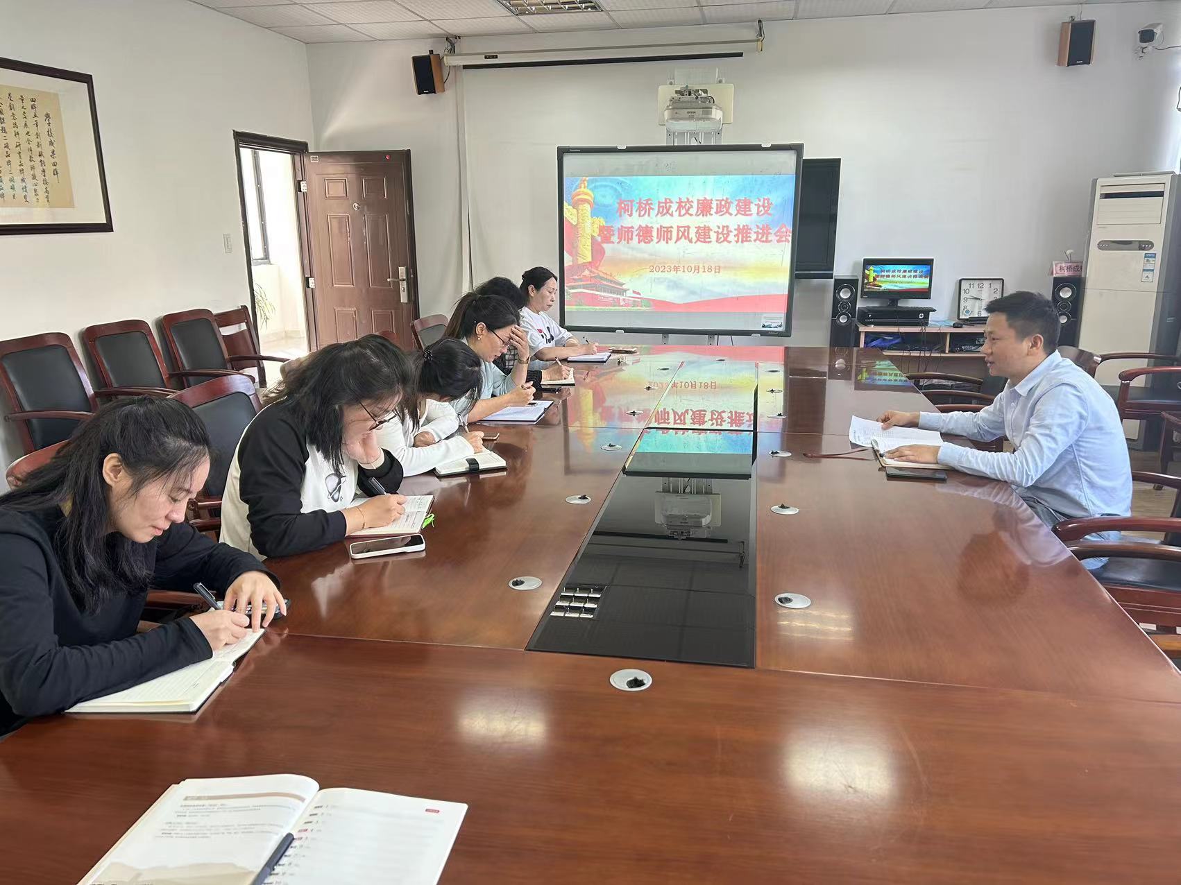 為進(jìn)一步加強(qiáng)教師廉潔從教、規(guī)范從教的思想意識(shí),樹(shù)立愛(ài)崗敬業(yè)、為人師表的良好形象,10月18日上午,柯橋成校召開(kāi)廉政建設(shè)暨師德師風(fēng)推進(jìn)會(huì)。