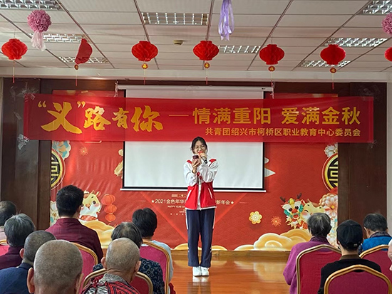 “重陽(yáng)節(jié)”來(lái)臨之際,為了繼承和發(fā)揚(yáng)中華民族尊老、敬老、愛(ài)老的傳統(tǒng)美德,引導(dǎo)學(xué)生尊重老人、孝敬長(zhǎng)輩、學(xué)會(huì)感恩。同時(shí),也為進(jìn)一步倡導(dǎo)“奉獻(xiàn)、友愛(ài)、互助、進(jìn)步”的志愿者精神,近日,紹興市柯橋區(qū)職教中心校團(tuán)委近日組織“陽(yáng)光使者”義工服務(wù)團(tuán)隊(duì)的青年志愿者來(lái)到華舍金色年華養(yǎng)老服務(wù)中心,開(kāi)展“‘義’路有你——情滿(mǎn)重陽(yáng) 愛(ài)滿(mǎn)金秋”義工服務(wù)活動(dòng)。