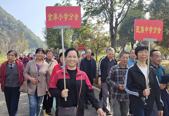 一路上,大家有說有笑,邊走邊欣賞遂昌松陰溪畔美麗風景。隊伍中有97歲高齡的毛學浩老師拄著拐杖一直走到終點,還有像范明、雷月明、黃國強、盧淑璠等80多歲老師自始至終“不落隊”。