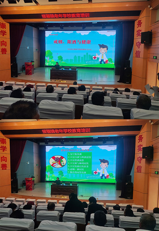 此次健康知識講座通俗易懂,貼近生活,受到了轄區(qū)老年朋友的一致好評。主辦方負(fù)責(zé)人裴新明校長希望大家回家后,以身作則,積極引導(dǎo)教育子女一起戒煙、限酒,樹立健康理念,過文明健康生活。(張孟華)
