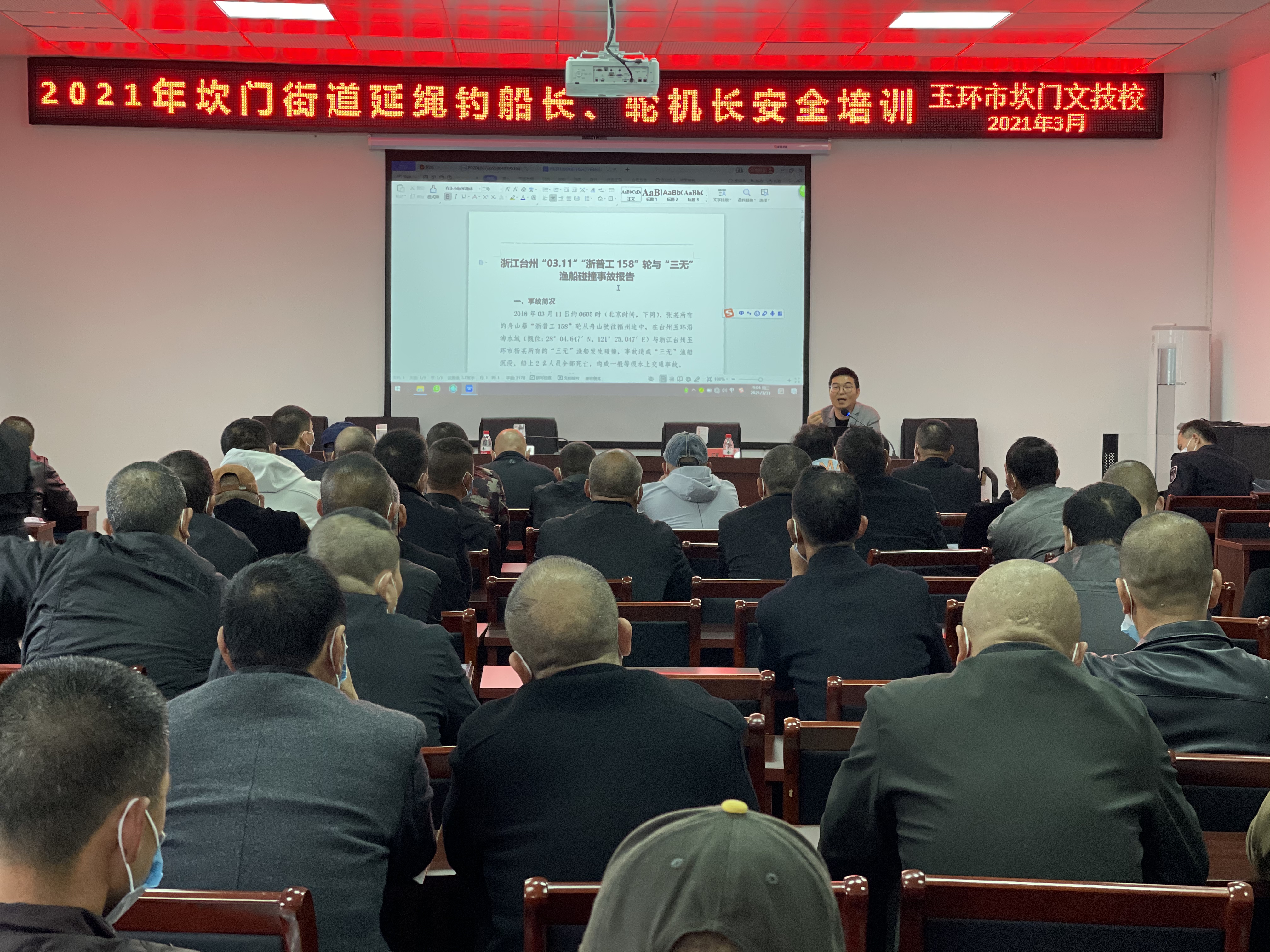 學校發揮自身優勢資源,積極開展“三色文化大講堂”藍色主題文化教育培訓活動,合力助推美麗漁鄉共進共富。配合坎門街道和坎門漁民協會,利用禁漁期這個有利的時間節點,開展“千村萬戶漁民素養提升培訓”,內容涉及漁業安全生產、漁業新設備的使用和設備的維護等方面,取得了較好的成果。從2020年至今,學校已承辦4期培訓,培訓漁民達1149人,發放培訓資料近4000份,對推動坎門地區現代漁業發展具有重要意義。