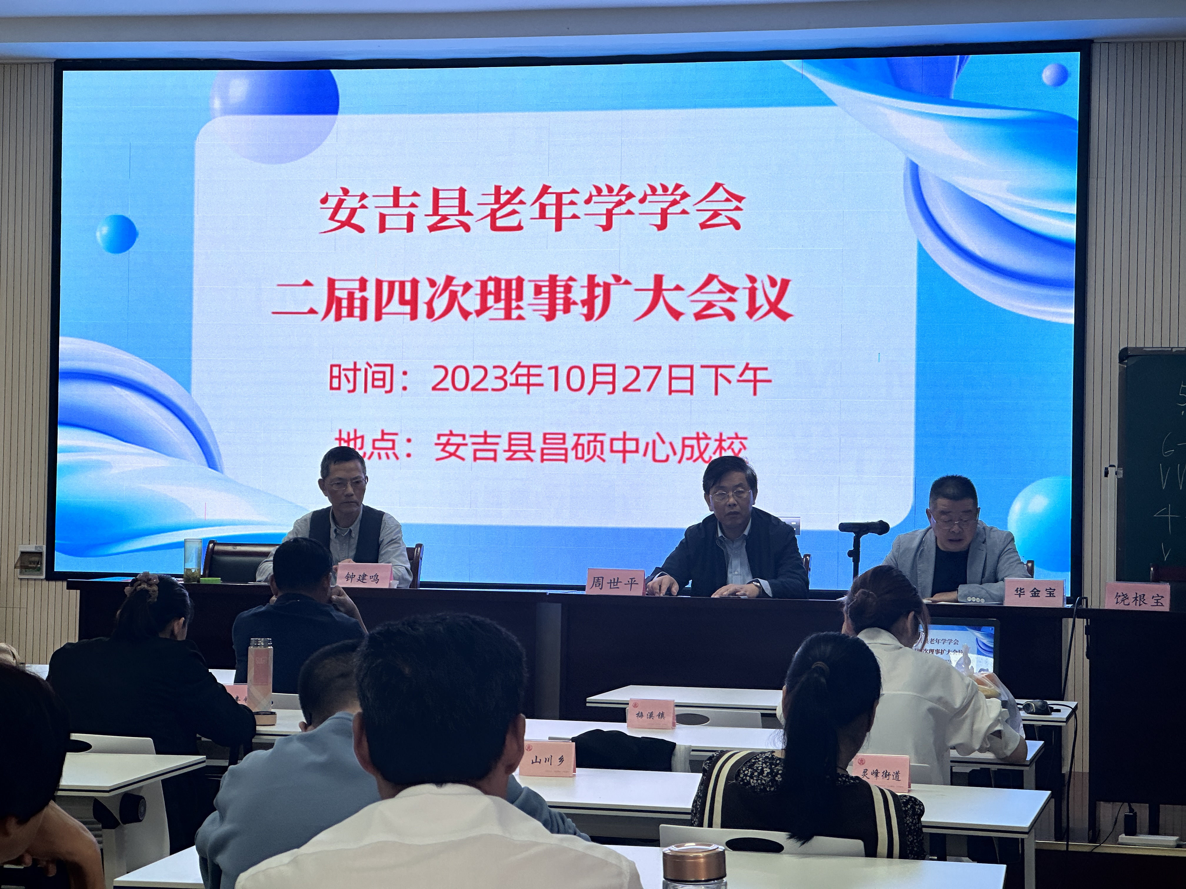 10月27日,安吉縣老年學學會二屆四次理事會擴大會議在安吉縣社區(qū)教育學院昌碩分院召開。省衛(wèi)健委老齡健康處處長周世平出席會議并講話,縣老年學學會執(zhí)行會長鐘建鳴主持會議。