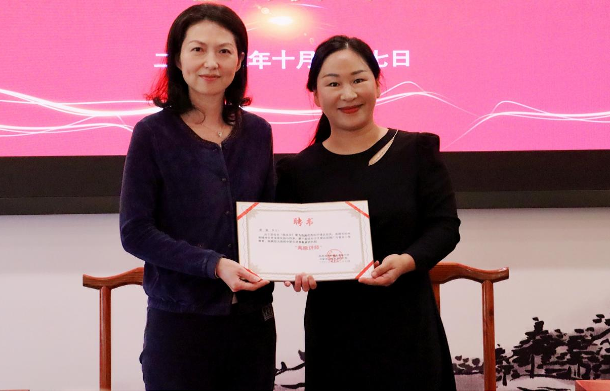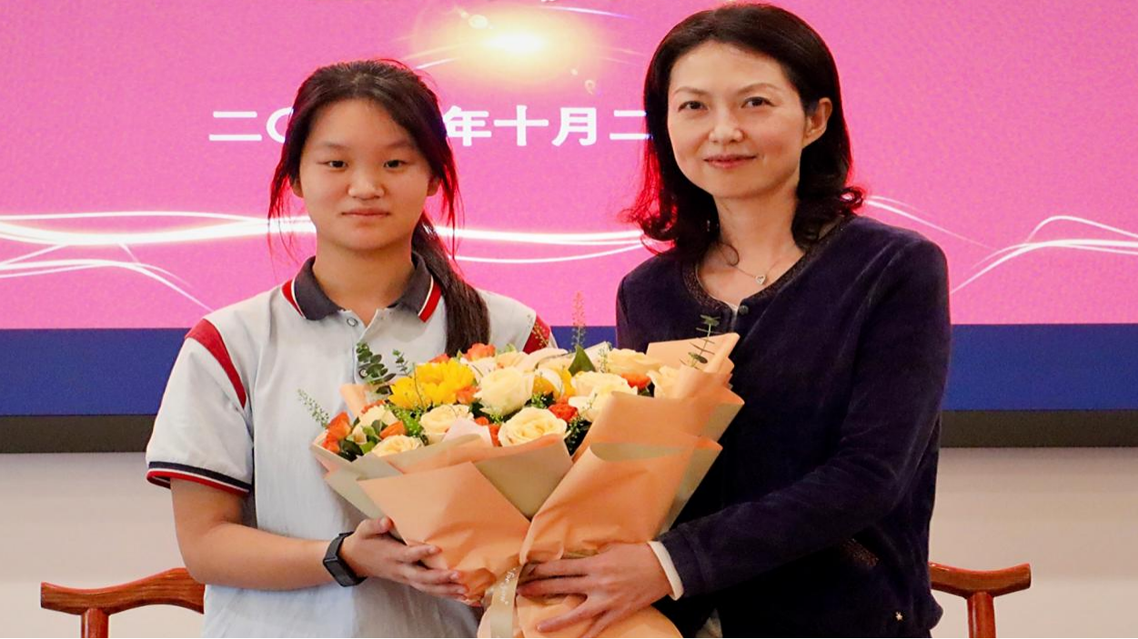 協議簽署完畢后,包胡校長頒發了“名譽校友”榮譽證書和中職生動商教育研究院“高級講師”聘書,閑林職高女子手球隊隊長徐敏蕊代表全隊獻上鮮花。
