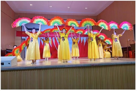 激情的音樂響起,楓之韻藝術(shù)團(tuán)演員盛裝表演的《盛世歡歌》傾情開演,喜慶的服裝、奔放的舞姿吸引住了觀眾的眼球,紛紛拍照。歌曲《永遠(yuǎn)是朋友》、獨(dú)舞《九兒》……一個(gè)個(gè)節(jié)目依序表演,謝小英,何月英等八人的《越劇》大聯(lián)唱掀起了演出的高潮,《我家有個(gè)小九妹》《五女拜壽》等選段劇目耳熟能詳,純正的唱腔、嫻熟的動(dòng)作,贏得掌聲連連。大溪村村民自編自導(dǎo)自演的情景劇《不忘階級(jí)苦》,深情地演繹,讓人體會(huì)到現(xiàn)在的美好生活得之不易。最后,熟悉的旋律響起,全體演員一起走上舞臺(tái),演出在《我和我的祖國》同唱中落下帷幕。