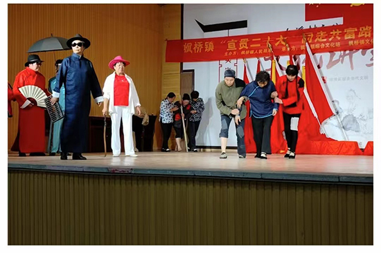10月28日晚,諸暨市楓橋鎮(zhèn)大溪村的文化禮堂內(nèi)格外熱鬧,村民們從四面八方趕來,楓橋鎮(zhèn)楓之韻藝術(shù)團(tuán)“楓橋鎮(zhèn)‘宣貫二十大,同走共富路’送戲下鄉(xiāng)”文藝巡演在此演出。