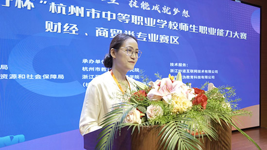啟動(dòng)儀式上,臨平商貿(mào)職業(yè)高級中學(xué)校長沈琪首先代表學(xué)校對蒞臨的專家及各校的參賽選手表示熱烈歡迎,同時(shí)感謝組委會(huì)的信任,由學(xué)校承辦2023年財(cái)經(jīng)商貿(mào)類賽項(xiàng)。接著,沈琪介紹了學(xué)校辦學(xué)歷史、專業(yè)情況及校園文化等,重點(diǎn)介紹財(cái)經(jīng)商貿(mào)類專業(yè)為學(xué)校的主體專業(yè),希望通過承辦此次比賽,以賽促改,推動(dòng)財(cái)經(jīng)商貿(mào)類專業(yè)建設(shè),打造專業(yè)品牌。