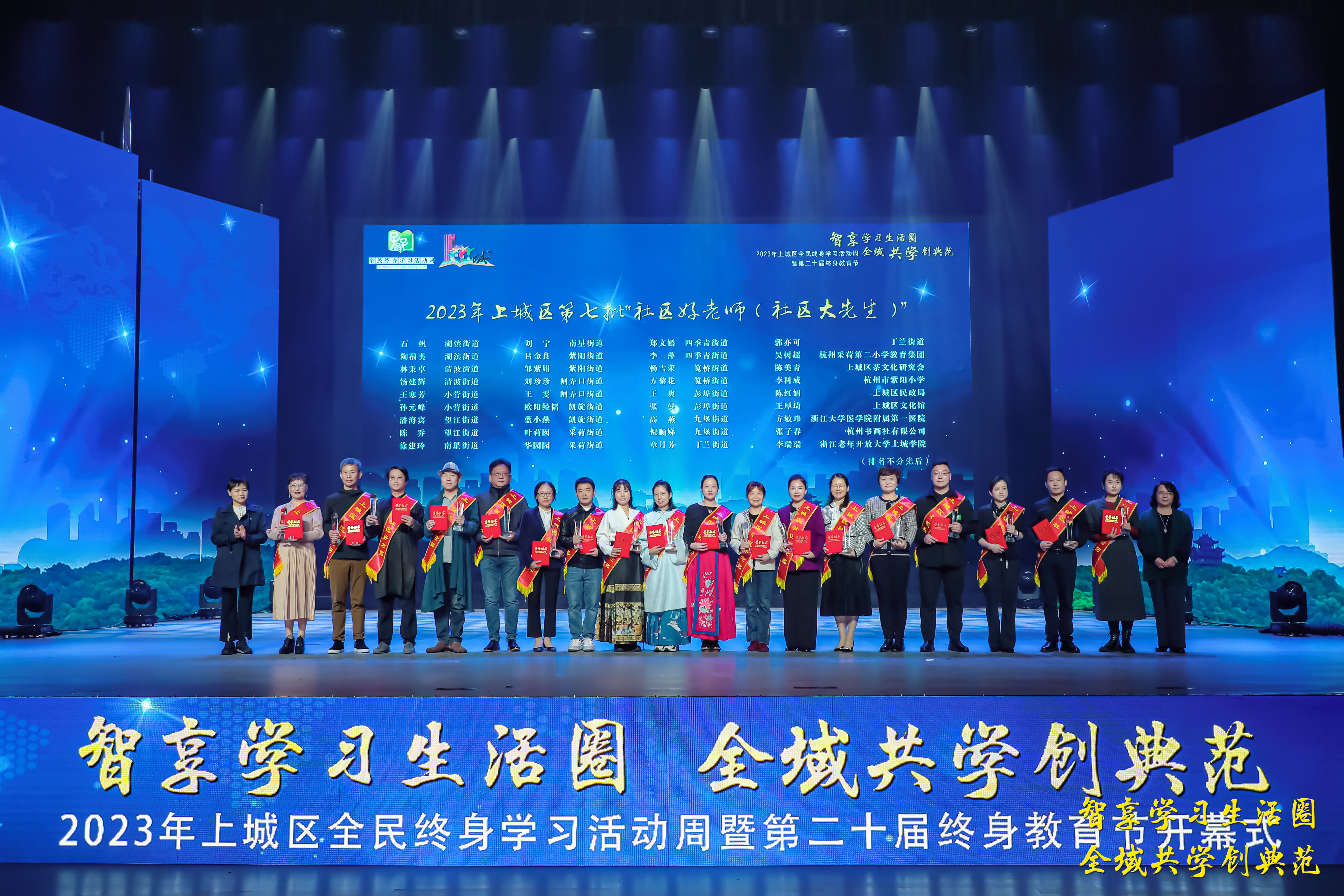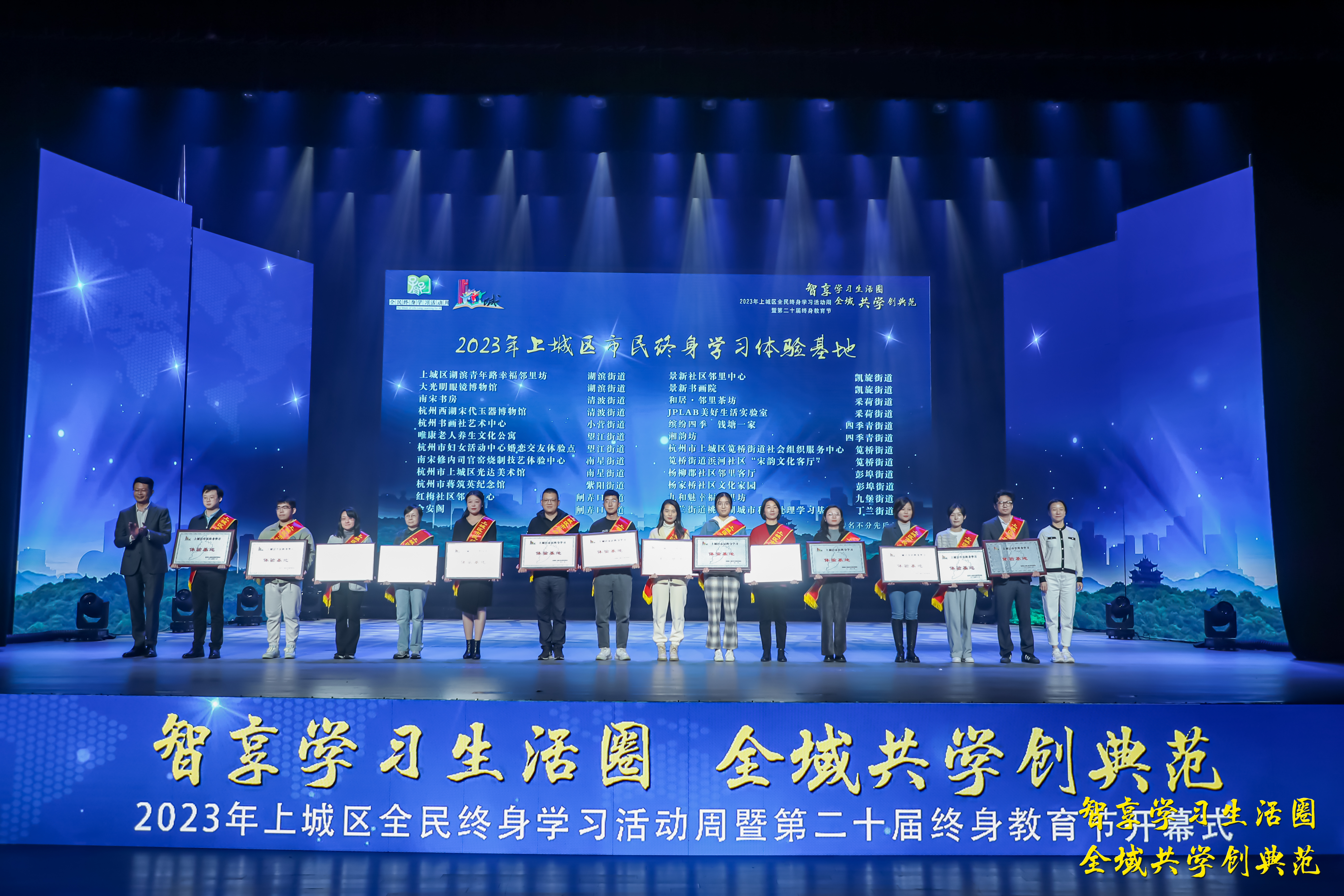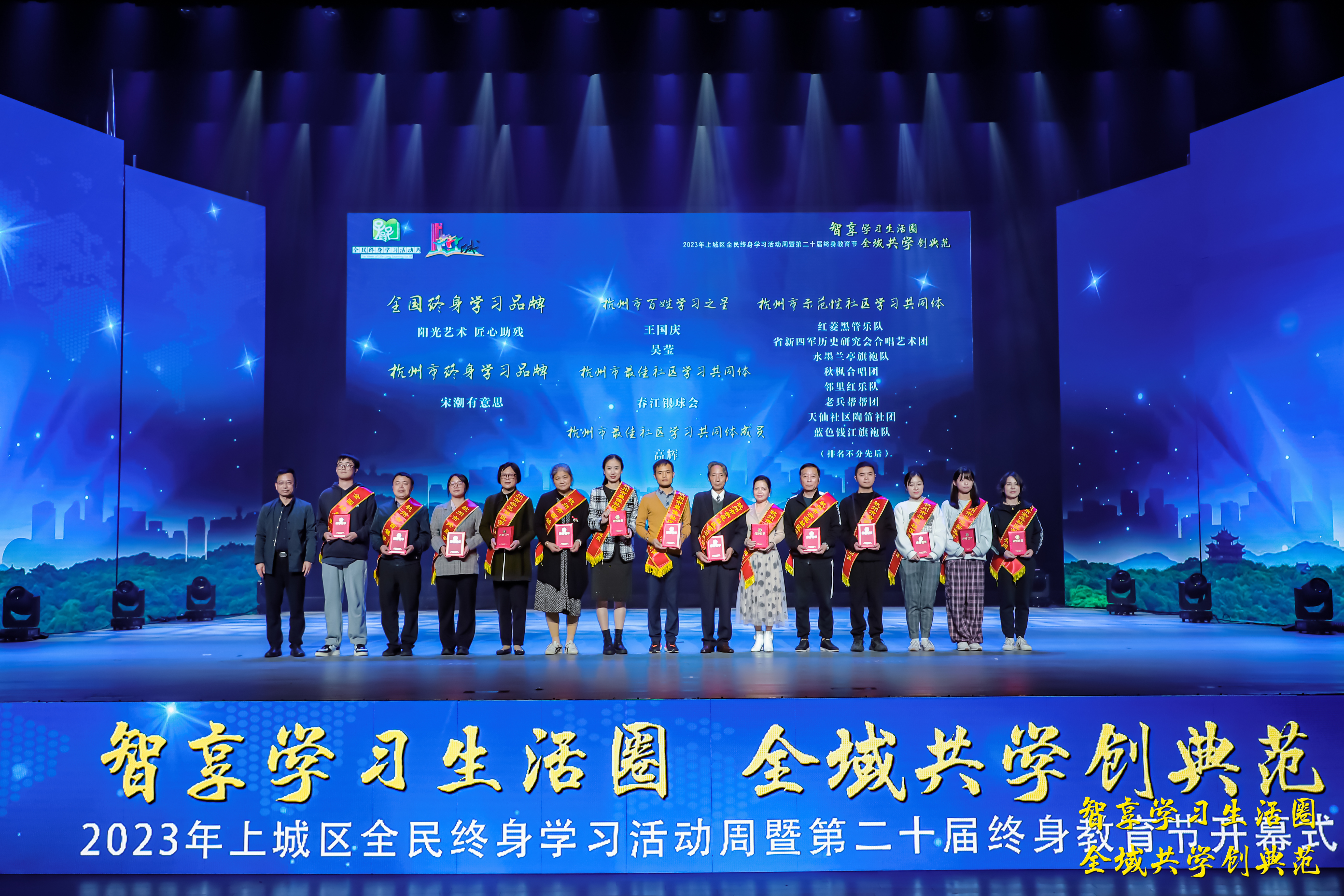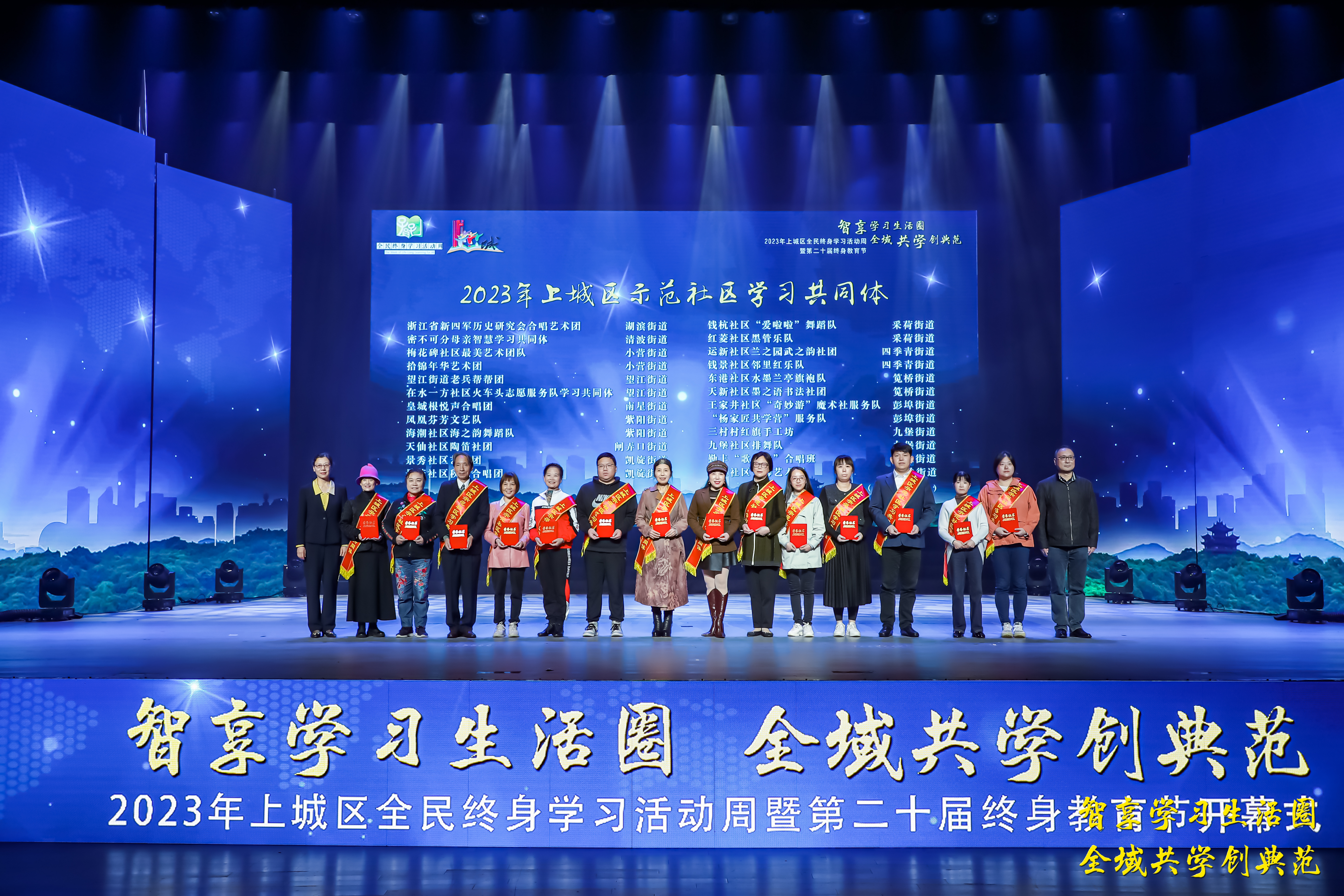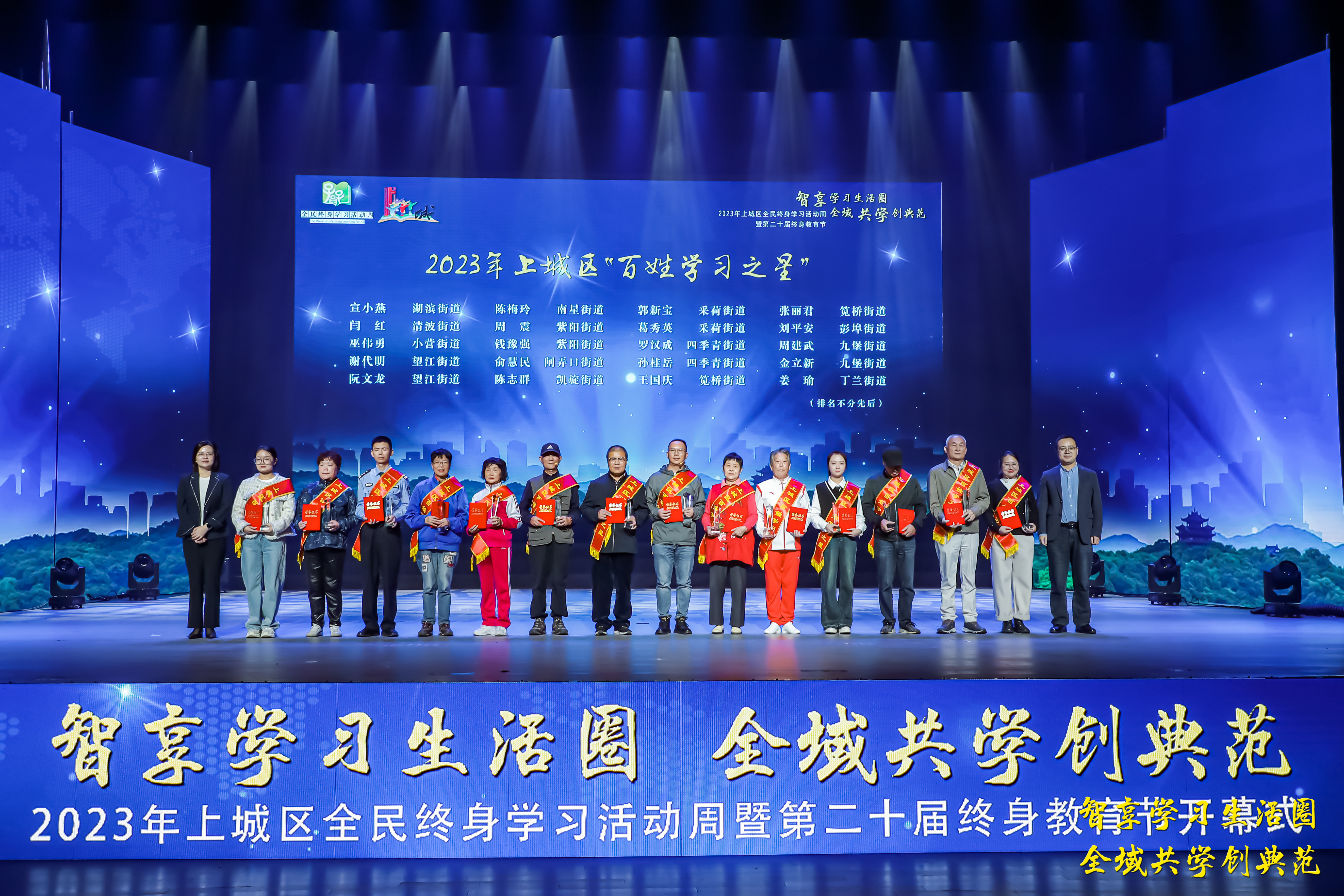 隨后,虞江鋒、孔德君為上城區20位百姓學習之星頒獎,袁俊、韋云為24個示范學習共同體頒獎。