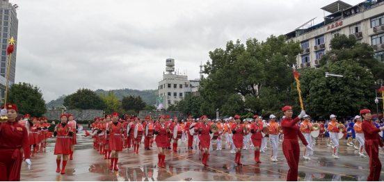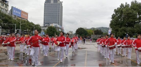 看,牡丹亭、魅力畬鄉、氣排之花、快樂的4個軍鼓隊來了,表演更是威武雄壯。循著領隊的旗令,隊員們時而挺胸仰身,時而屈膝踏步,或成橫縱,或成十字,不斷變換隊形,鼓聲激昂、鐃聲鏗鏘……一身潔白的軍裝,英姿颯爽;一襲紅色的軍裙,熱烈如火;或一身帥氣的迷彩靚麗瀟灑。伴隨著激昂的軍旅音樂,似乎觸摸到鏗鏘激越的軍旅。