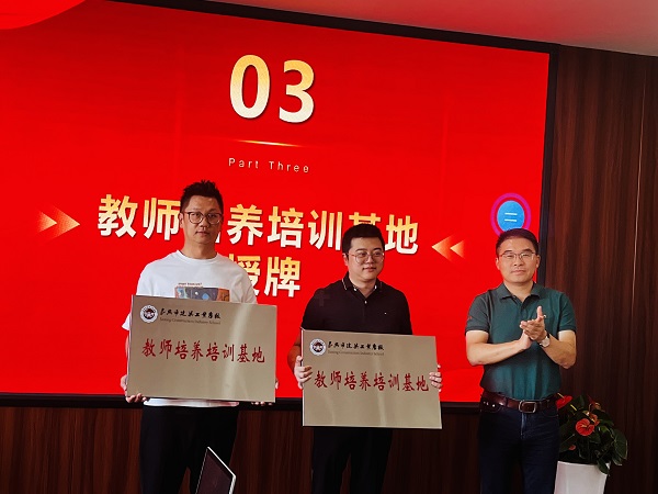企業技術骨干和學校骨干教師簽署雙師共同體結對協議,開啟“共建共融、互幫互助”的建設之路。