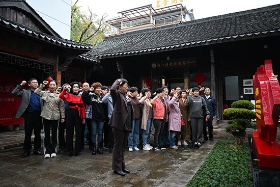 在清冷的秋雨中,深受感動的黨員學員們舉起右手,再次重溫入黨誓詞。大家紛紛表示,要繼續發揮余熱,繼續弘揚共產黨人的偉大精神。