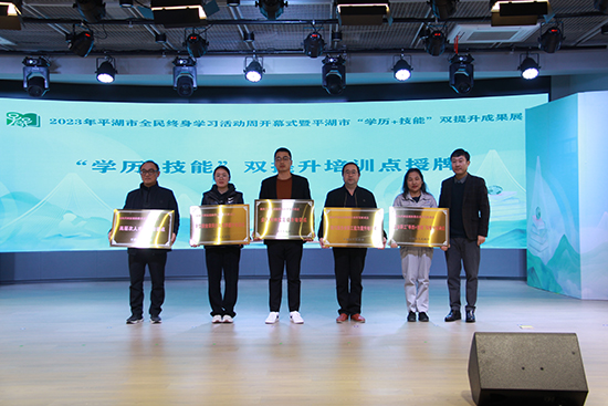 對浙江開放大學平湖學院、衛星能源公司、鐘埭成校、松楓社區、鄉村振興產業學院“學歷+技能”雙提升培訓點進行授牌。