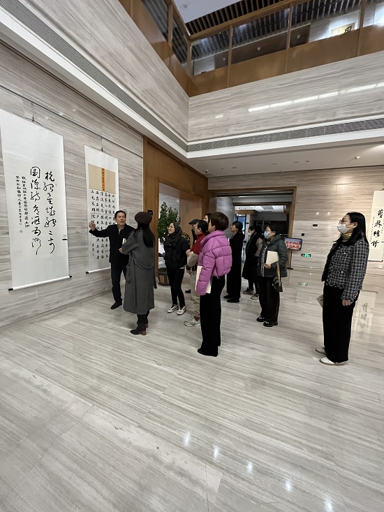 這次特殊的書法課依托的是在柯橋美術(shù)館舉辦的紹興市柯橋區(qū)書法篆刻大展。學(xué)員們首先參觀了以“藝路共富”為主題的,形式多樣的篆、隸、楷、行、草各種書體及篆刻的展覽作品,隨后在任課老師汪燦根的帶領(lǐng)下,大家各抒己見,大飽眼福,領(lǐng)略著不同書法愛好者的風(fēng)采,感受每幅書法作品所帶來的情感寄托。