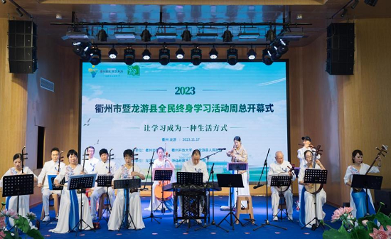 本次開幕式活動(dòng)形式多樣、豐富多彩,充滿地方元素特色。有龍游縣社區(qū)學(xué)院選送的民樂合奏《撥根蘆柴花》、柳園小學(xué)的婺劇《別洞觀景》、模環(huán)鄉(xiāng)社區(qū)學(xué)校的道情說唱《家鄉(xiāng)的變化》、實(shí)驗(yàn)幼兒園的情景劇《永不消逝的電波》以及詹家鎮(zhèn)社區(qū)學(xué)校的畬族舞蹈《山哈一曲唱浦山》等文藝節(jié)目,來自龍游縣15個(gè)鄉(xiāng)鎮(zhèn)(街道)社區(qū)學(xué)校分管負(fù)責(zé)人共同宣讀了《全民終身學(xué)習(xí)活動(dòng)倡議書》。
