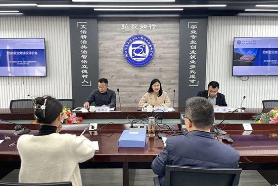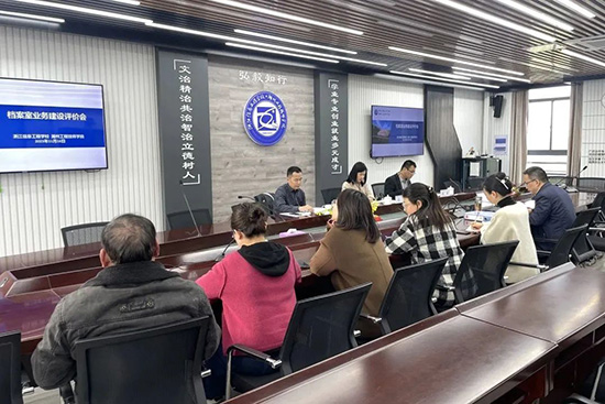為加強學校檔案工作管理能力,提升檔案室業務建設規范化水平,11月16日,湖州市委辦檔案管理處處長陳愛等一行對學校檔案室業務建設工作進行測評,校黨委委員、副校長湯方榮作學校檔案工作匯報并接待檢查。
