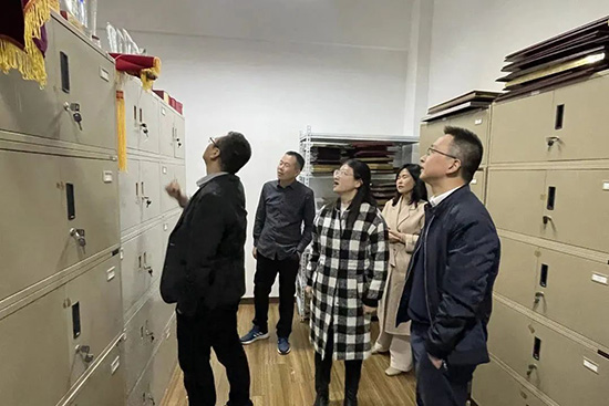 在聽取學校檔案工作匯報及自評情況介紹后,檢查組進入檔案室進行實地檢查驗收,現場查看學校檔案室設施設備的配備情況、檔案整理的規范化情況以及檔案信息化建設情況等,并對各門類的案卷目錄、文書檔案、特種載體等進行了細致查看。