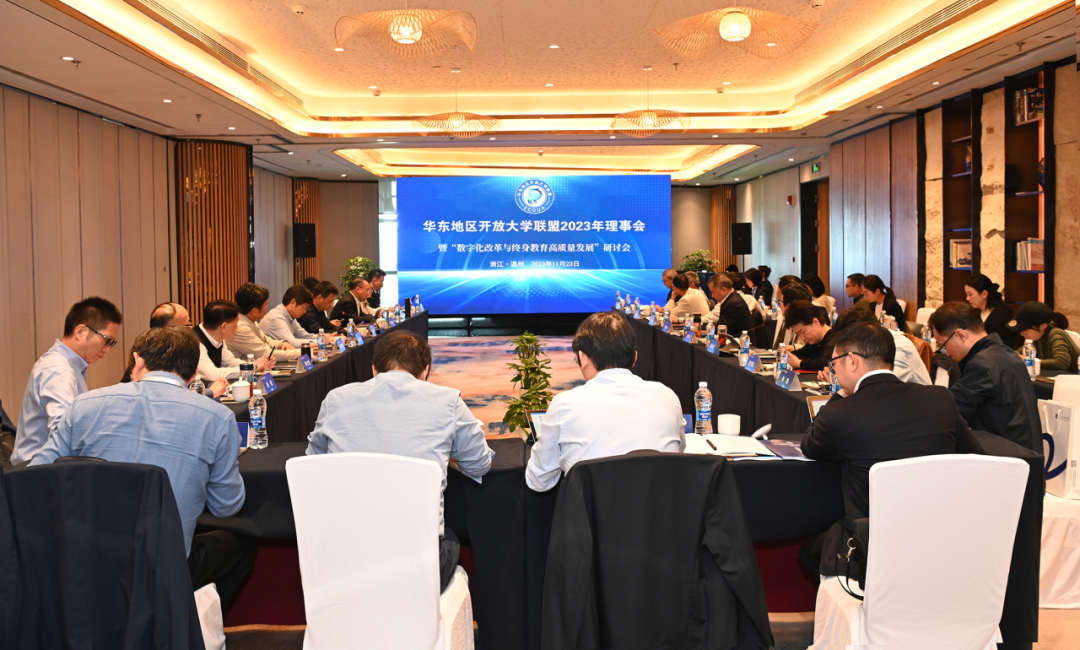 11月22日至24日,由浙江開(kāi)放大學(xué)承辦、溫州開(kāi)放大學(xué)協(xié)辦的華東地區(qū)開(kāi)放大學(xué)聯(lián)盟理事會(huì)2023年會(huì)議在溫州召開(kāi)。來(lái)自安徽、福建、山東、江西、上海、江蘇、浙江、廈門(mén)、寧波、南京、溫州等地開(kāi)放大學(xué)領(lǐng)導(dǎo)及相關(guān)部門(mén)負(fù)責(zé)人參加會(huì)議。浙江開(kāi)放大學(xué)校長(zhǎng)王正東主持會(huì)議。
