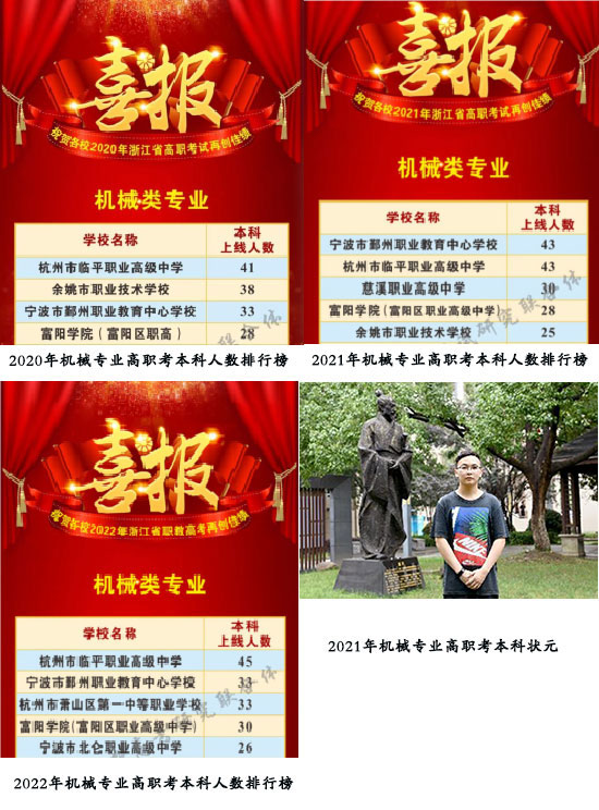 近四年,本科上線人數,連續四年位列浙江省第一。馬駿毅同學勇奪2021年全省狀元,每年有大批學生進入中國計量大學、浙江科技學院、浙江師范大學、溫州大學等知名院校深造。多年來培養了,如:全國課程思政教學名師盛國棟,浙江工業大學在讀博士生吳佳峰等。