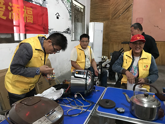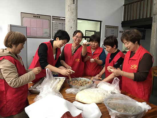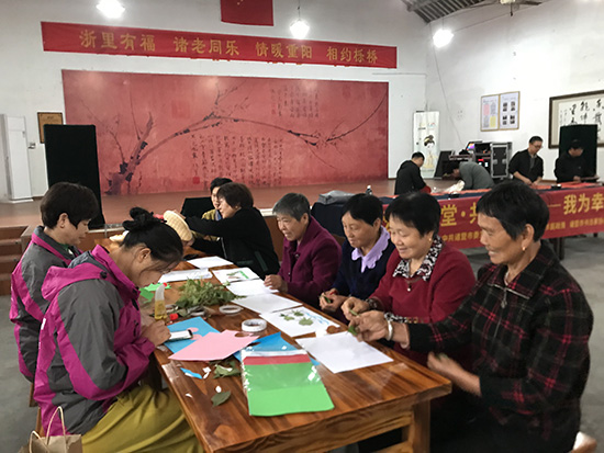 諸暨市楓橋鎮(zhèn)社區(qū)教育學校聯(lián)合楓橋鎮(zhèn)義工聯(lián)合會組織志愿者來到禮堂舉行豐富多彩的敬老愛老活動:“楓橋大媽”在愛心食堂內(nèi)蒸饅頭,分頭揉面、剁肉、包包、蒸鍋,將完工的饅頭送給愛心食堂就餐的老人,就餐的老人吃著熱氣騰騰、美味可口的饅頭激動萬分,連連稱贊;理發(fā)組擺開架勢為老人們洗頭、理發(fā),讓老人們從“頭”開始過上幸福生活;檢修組帶著工具為老人們檢修家用電器——電飯煲、電茶爐、電風扇……壞了的電器一經(jīng)技師的手擺弄,又能重新啟動使用,讓老人們高興得合不攏嘴;醫(yī)療組運用測血儀測血壓、量體溫與醫(yī)學咨詢,在家門口享受專家待遇,問診求醫(yī)解決心中困惑;書法組擺攤在喜慶的紅燈籠紙上揮灑“壽、福”“平安”“幸福”等詞,一幅幅不同書體的作品一旦寫成就被爭搶一空;粘貼畫組手把手教老人們粘貼畫技藝,用不同色彩的樹葉在紙上張貼造型,在老師精心指導下,一幅幅憨態(tài)可愛的畫作在手中出現(xiàn),一片片樹葉被賦予新的生命與生機,令老人們開心不已。