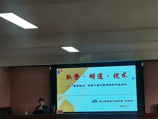 浙江省教育廳教研室江戰(zhàn)明老師作主題為《“素養(yǎng)導(dǎo)向”背景下高中數(shù)學(xué)教學(xué)改革啟示》專題講座,講座圍繞著“高考數(shù)學(xué)改革改在哪里”和“數(shù)學(xué)教學(xué)轉(zhuǎn)型轉(zhuǎn)向何方”兩方面,從“實(shí)現(xiàn)三大轉(zhuǎn)變”“強(qiáng)化三個功能”“落實(shí)三項(xiàng)舉措”“探索四考走向”“樹立四個風(fēng)標(biāo)”等內(nèi)容展開。浙江省特級教師王紅權(quán)作主題為《回歸理性 夯實(shí)基礎(chǔ)——以導(dǎo)數(shù)試題為例談2024復(fù)習(xí)教學(xué)》專題講座,王老師從高考真題出發(fā),探究高考數(shù)學(xué)題蘊(yùn)含的數(shù)學(xué)思想,從高考題中提煉了直覺的重要性,點(diǎn)出了運(yùn)算的重要性。湖州市高中數(shù)學(xué)教研員王勇強(qiáng)作主題為《高三數(shù)學(xué)復(fù)習(xí)備考策略和建議》的專題講座,他以歷年新高考試題為例,與大家分析了應(yīng)用能力考查的“三考走向”——考閱讀、考推理、考運(yùn)算。長興縣高中數(shù)學(xué)教研員王麗芳作主題為《從24屆一模縣情況分析談有效教學(xué)》的專題講座,王老師就一模試卷壓軸題的探究為主題與教師進(jìn)行深入的交流。專家們通過高端前沿的理論結(jié)合多種試卷類型研究,為參訓(xùn)教師接下去的教學(xué)工作提供了指導(dǎo)性建議,為對新高考、新變化、新要求正處于迷茫中的參訓(xùn)教師指明了教學(xué)方向、解除了疑惑,老師們紛紛表示受益匪淺。