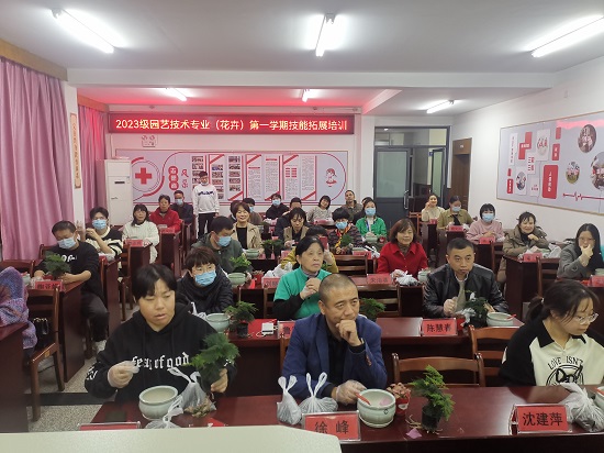 11月29日晚,齊賢成校三樓區(qū)教育教室內(nèi),2023級園藝技術(shù)專業(yè)(花卉)第一學期技能拓展培訓開班,35人參加培訓。