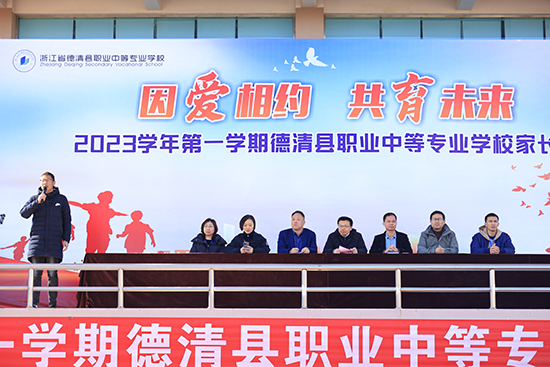 為進(jìn)一步加強(qiáng)家校溝通,凝聚家校教育智慧,12月1日,德清職業(yè)中專(zhuān)召開(kāi)2023學(xué)年第一學(xué)期“因愛(ài)相約 共育未來(lái)”主題家長(zhǎng)會(huì),72個(gè)在校班級(jí)的2000余名家長(zhǎng)參加??h教育局黨委委員、湖州市技師學(xué)院、德清縣職業(yè)中專(zhuān)校長(zhǎng)董國(guó)偉,副校長(zhǎng)余靜學(xué),學(xué)校各科室負(fù)責(zé)人以及各系政教主任出席了會(huì)議,會(huì)議由黨政辦負(fù)責(zé)人李馥萸主持。