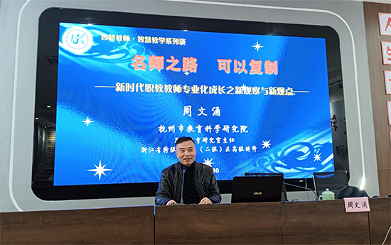周文涌教授給學員們作了題為《名師之路 可以復制》的專題講座。他從自身的成長經歷說起,講述了專業(yè)教師成長各階段的規(guī)律、發(fā)展目標。重點講授了一名優(yōu)秀教師的標準、特征和一堂好課的評價標準。周文涌教授的現(xiàn)身說法和大量生動的案例闡述,猶如一盞明燈點亮了學員們的職業(yè)生涯路。