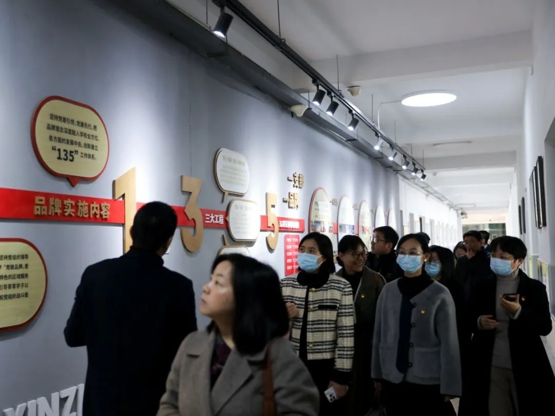 一行人參觀了湖畔之思工作室、黨員活動室、黨建長廊,深入了解藝校“藝心向黨”黨建品牌,以及在黨建工作和文化建設方面所做的努力和取得的成果,并參觀了廉政公園及名師長廊,了解學校清廉文化與黨員教師凝心聚力、發揮先鋒模范作用情況。