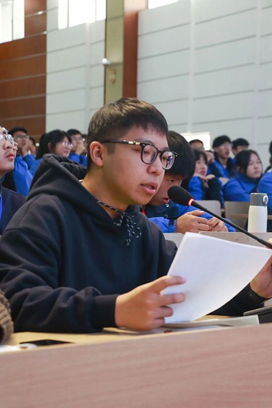 校學(xué)生會(huì)主席趙華樑同學(xué)發(fā)言,他認(rèn)為在學(xué)生會(huì)的管理上,團(tuán)結(jié)合作是最重要的。只有團(tuán)結(jié)一心,凝聚每一位成員的智慧和力量,才能更好地完成學(xué)生會(huì)的各項(xiàng)工作,面對(duì)日益多元化的學(xué)生需求時(shí),我們要敢于嘗試新領(lǐng)域,新方法,敢于創(chuàng)造,以適應(yīng)新時(shí)代的發(fā)展。希望大家能夠更加注重服務(wù)同學(xué),關(guān)心同學(xué)。此外他還希望學(xué)生會(huì)能夠更加重視專業(yè)素養(yǎng)的提升,不斷加強(qiáng)成員們的綜合實(shí)力。