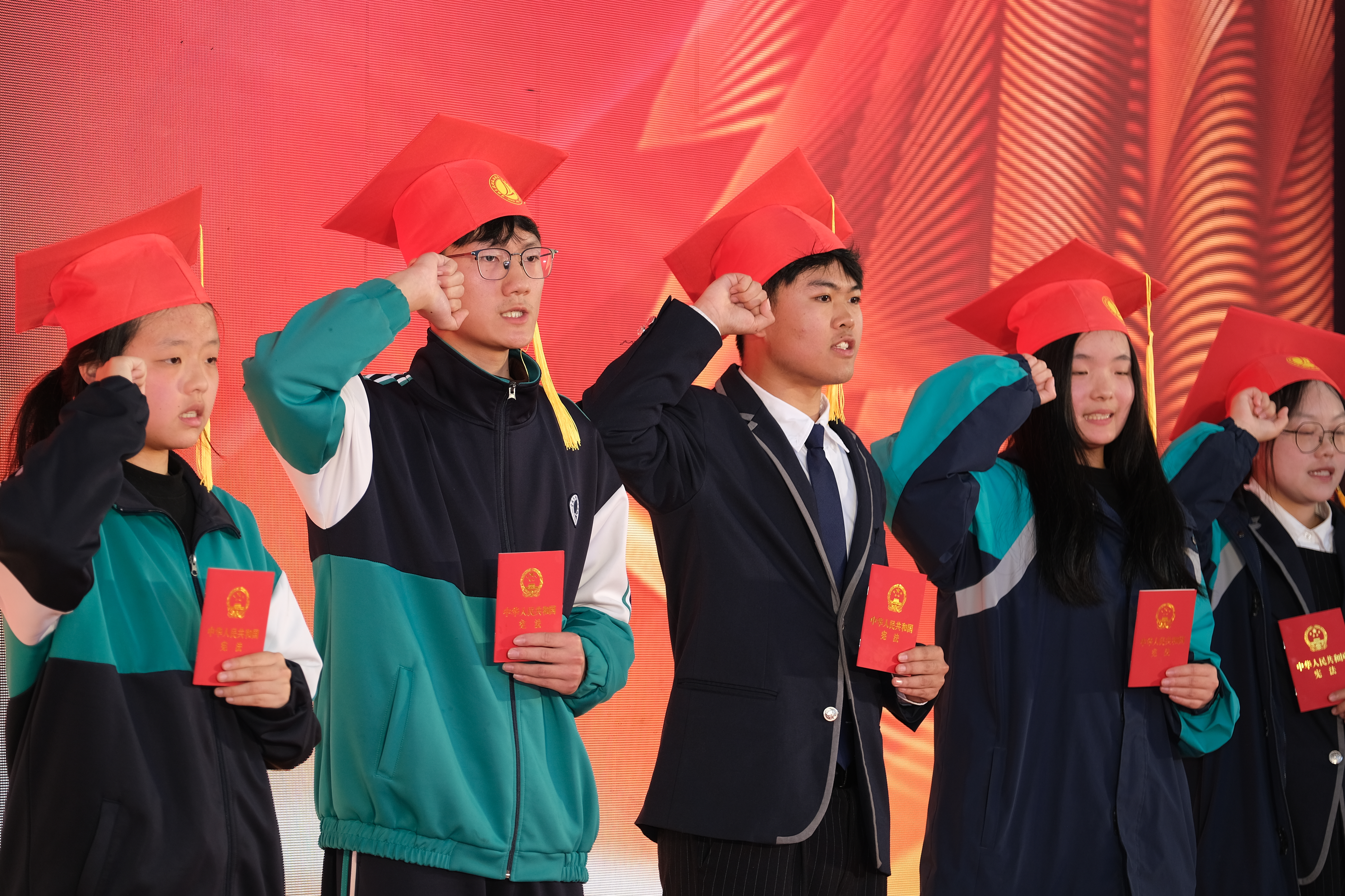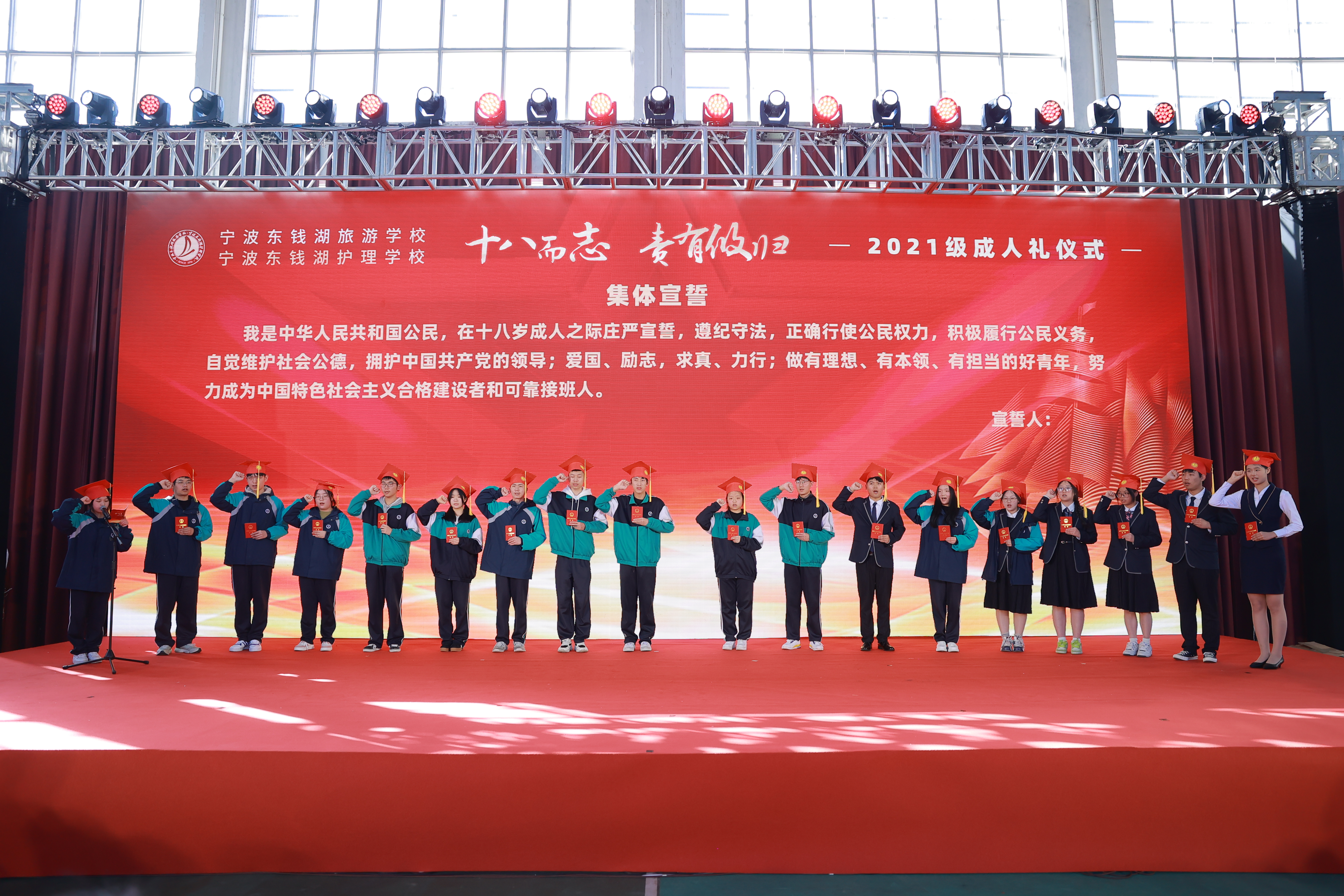 “我在十八歲成人之際莊嚴(yán)宣誓,遵紀(jì)守法,愛國、勵志、求真、力行,做有理想、有本領(lǐng)、有擔(dān)當(dāng)?shù)暮们嗄辏Τ蔀橹袊厣鐣髁x合格建設(shè)者和可靠接班人。”12月8日,在寧波東錢湖旅游學(xué)校 “十八而志 責(zé)有攸歸” 2021級成人禮上,近700名高三全體學(xué)生手持《中華人民共和國憲法憲法》讀本,莊嚴(yán)宣誓,誓詞鏗鏘有力,響徹上空。
