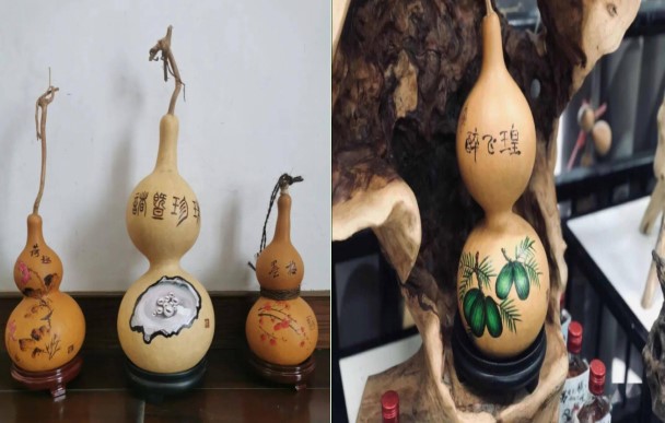 然而,在學習過程中,蔣老師一直在思考一個問題:為何如此精妙絕倒的藝術會后繼乏人?他覺得這可能就和烙畫葫蘆藝術品過分注重藝術性,而應用性不強有關。他覺得一門技藝要傳下去,還是要產業化,能應用于千家萬戶才會有生命力。為此,他開始帶著工藝美術專業的學生創新烙畫葫蘆藝術品,把葫蘆產品分純觀賞和可應用兩類來進行制作。