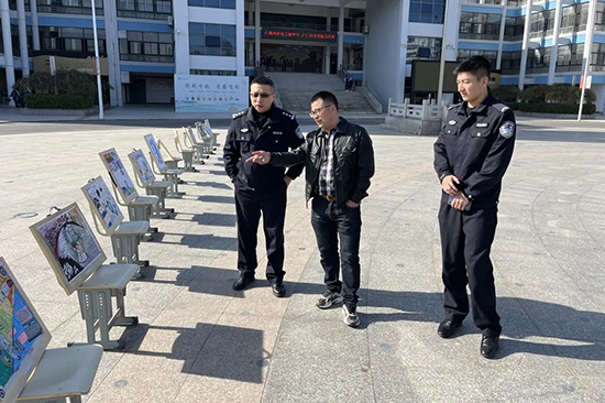講座結束,徐警官攜仁皇山派出所民警共同參觀了學校信息部舉辦的網絡素養手抄報展示活動,對學生的作品給予高度評價,并對警校共建無詐校園提出建議和方案。