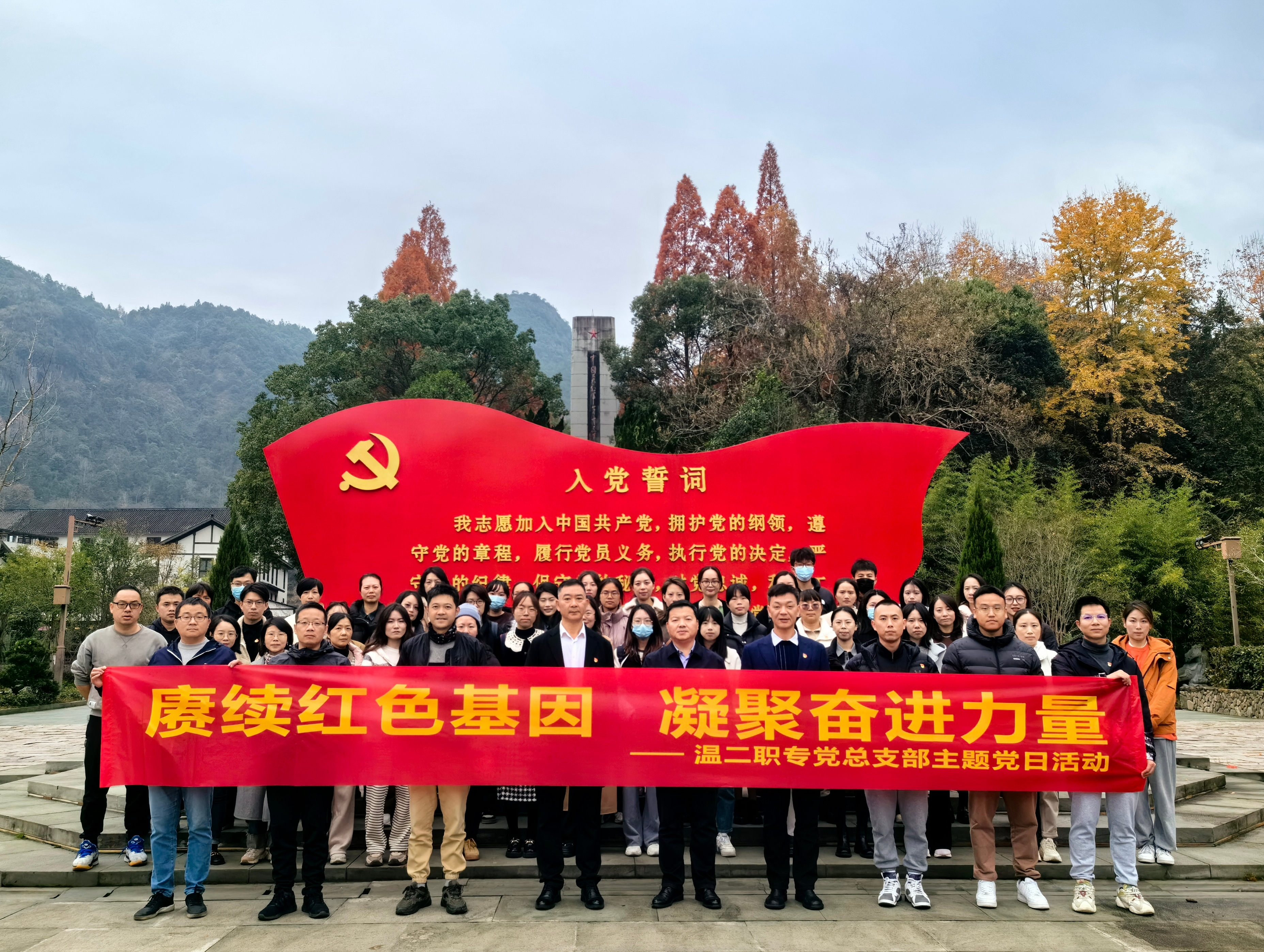 為深入學習貫徹習近平新時代中國特色社會主義思想主題教育活動,繼承和弘揚黨的優良傳統,增強黨性修養,近日,溫二職專黨總支部在永嘉紅十三軍教育基地開展“賡續紅色基因,凝聚奮進力量”主題黨日活動,本次主題教育覆蓋全體黨員。
