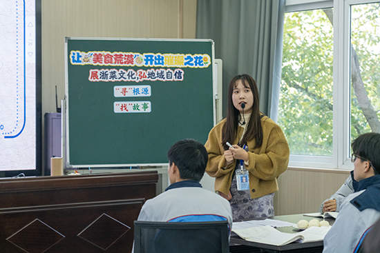 陳紅亞是嘉興市交通學校烹飪專業(yè)教師,主要教授中西式面點相關(guān)課程。本次主題班會評比中,她帶來的《讓“美食荒漠”開出璀璨之花》主題班會緊扣專業(yè)特色,以亞運會上國際友人對中國美食的喜愛為導入,從“尋根源——浙菜的起源”“找故事——講美食典故”“美差事——美食的制作過程”“食百味——品嘗學生制作的糕點”四個環(huán)節(jié),展現(xiàn)了浙菜的源遠流長和獨特魅力,培養(yǎng)了同學們對中華美食的自信心和發(fā)揚美食文化的責任感。