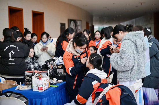 藝校積極統籌平臺資源,依托社團、美發與形象設計專業等特色優勢,竭誠為省藝術節提供全方位、高質量的服務,與社會共享育人成果。青春禮儀社的15名學生在社團導師陳文男老師的指導下,擔任閉幕式頒獎禮儀活動志愿者,她們站姿挺拔、體態優雅、表情得體、行進從容……每一處細節都充分展現了藝校航空服務專業學子向美而生的“禮遇”風采;美發與形象設計專業教師劉夢蓮老師帶領33名學生志愿者堅守舞臺后方,為開幕式舞蹈演員提供專業彩妝服務。精致的妝容不僅增強了演員的舞臺表現力,也使舞臺表演效果更加出彩。(通訊員:司曉妹)