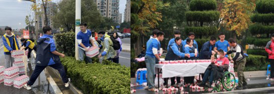 此時,現(xiàn)場氛圍達到了高潮,為了保證水、功能飲料的充分供應,志愿者們動作飛快,按照此前培訓所學的知識,及時補全物資。他們認真負責,為參賽者做好能量補給,他們充滿熱情,為參賽者點贊。