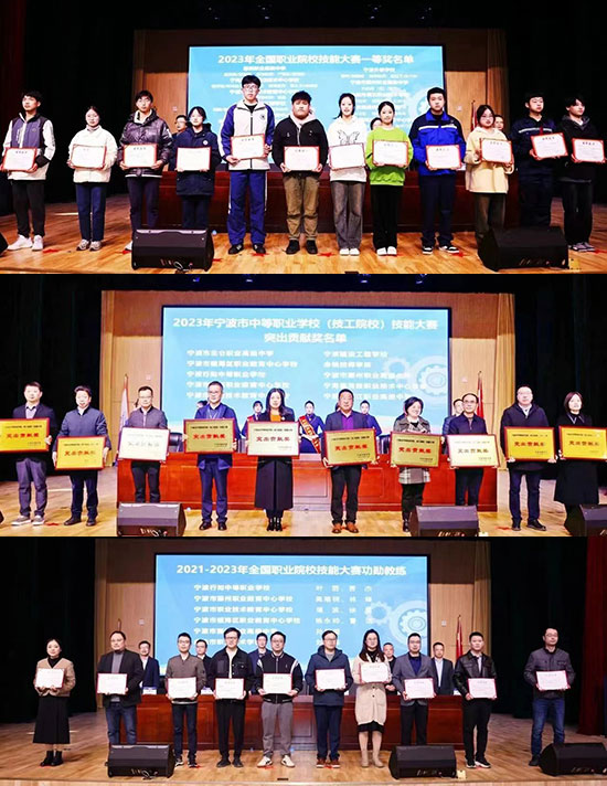 近日,第十八屆寧波市中等職業學校(技工院校)技能大賽開幕式在寧波市鄞州職業教育中心學校舉行。本屆大賽由寧波市教育局、寧波市人力資源和社會保障局、寧波市總工會聯合主辦,寧波市職業與成人教育學院(寧波市職成教研室)承辦,這是一場屬于職教人的盛宴。開幕式上對2023年度技能大賽表現突出的學校和個人進行表彰,鄞州職高再次榮獲“突出貢獻獎”。鄞州職高王志勇書記接過這一沉甸甸的獎項,王書記表示,這個獎項是對鄞州職高在技能大賽中優異表現的肯定和表彰,至此,鄞州職高已第12次獲此殊榮,學校將再接再厲,辦好人民滿意的職業學校。
