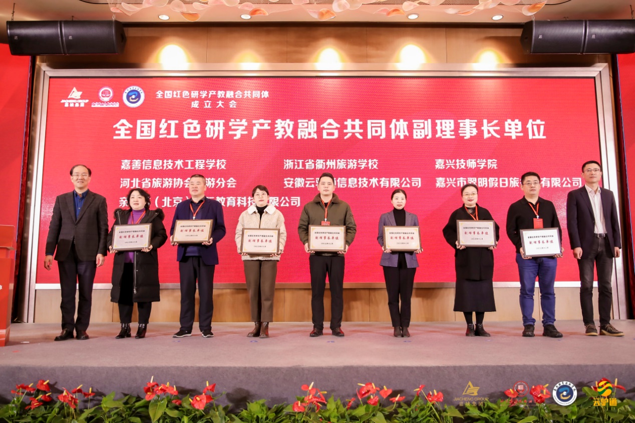 12月16日,全國紅色研學產教融合共同體成立大會在浙江省嘉興市舉行。本次大會以“賡續紅色血脈 傳承紅色基因”為主題,確定了《全國紅色研學產教融合共同體章程》和選舉產生的全國紅色研學產教融合共同體第一屆理事會理事長單位、常務副理事長單位、副理事長單位和秘書長名單,并向常務理事會單位授牌。