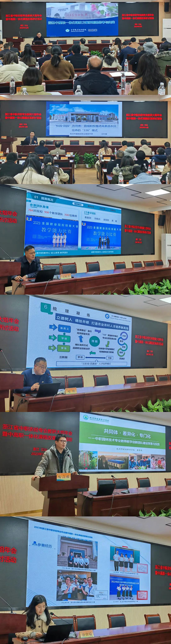 金華職業(yè)技術(shù)學(xué)院教授胡繁榮帶來了專題報告《浙江省中職園林技術(shù)中高職一體化專業(yè)教學(xué)標(biāo)準(zhǔn)解讀》;杭州市旅游職業(yè)學(xué)校屠偉偉作《共同體 差異化 專門化:園林技術(shù)專業(yè)教學(xué)創(chuàng)新團(tuán)隊建設(shè)研討》專題講座;富陽區(qū)職業(yè)高級中學(xué)汪利章作《“校園 田園”共同體:縣域職校推進(jìn)新型職業(yè)農(nóng)民培養(yǎng)的“336”模式》講座;衢州第二中專喻峰作《院校企協(xié)同:“崗課賽證”綜合育人教學(xué)改革模式》專題講座,他們分別從不同角度進(jìn)行農(nóng)經(jīng)專業(yè)課改成果方面的交流。來自諸暨市職教中心的劉柏炎、紹興財經(jīng)旅游學(xué)校的唐佳瑜分別進(jìn)行教學(xué)能力比賽展示與研討。