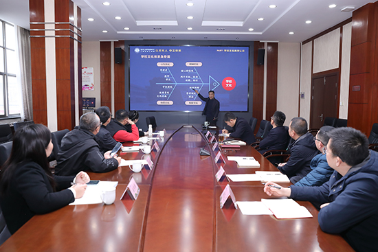 參觀結束后,雙方在學校行政樓304會議室進行座談交流。會上,甘建國書記以《以文化人 守正創新》為題作交流,甘書記從學校文化的再認識,學校文化管理的定義、特點和原則講起,到學校文化管理的實踐,最后重點介紹了上虞區職業教育中心校園文化建設等兩個成功案例。房永亮校長詳細介紹了學校的辦學歷史,辦學模式、招生就業、對口升學、專業建設等特色,并就今后職業學校的發展闡述了自己的觀點。參加交流會議的汽修教研組組長任良,向來賓匯報了學校高水平汽修專業的建設情況,詳細介紹了汽修專業創新人才培養模式、以賽促教強化技能及該專業連續三年獲得全國大賽金牌的成績。