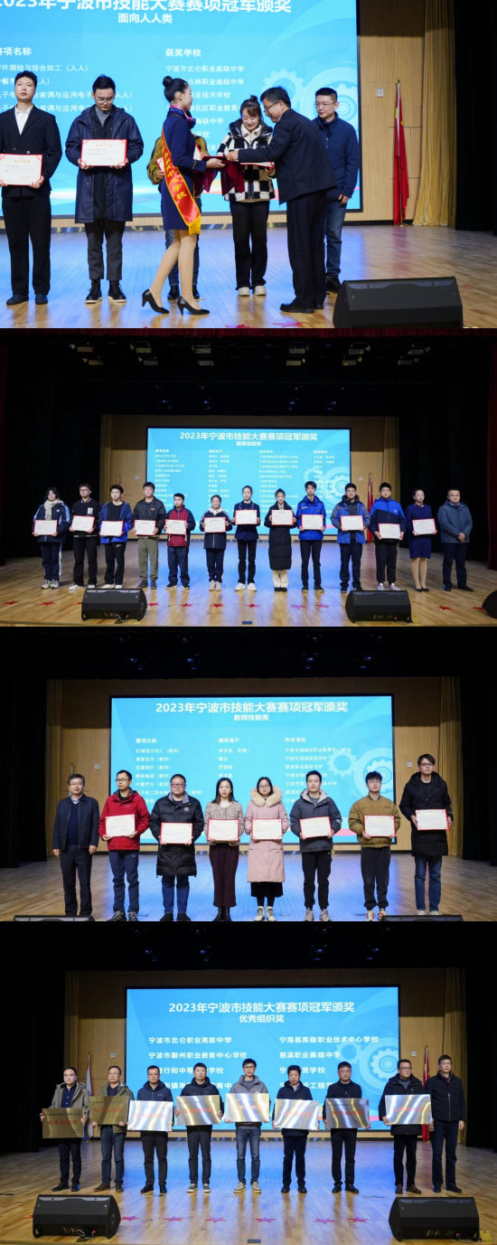北侖職業高級中學、鄞州職業教育中心學校、寧波行知中等職業學校、鎮海區職業教育中心學校、寧海縣高級職業技術中心學校、慈溪職業高級中學、寧波經貿學校、寧波建設工程學校等8所學校獲評優秀組織獎。