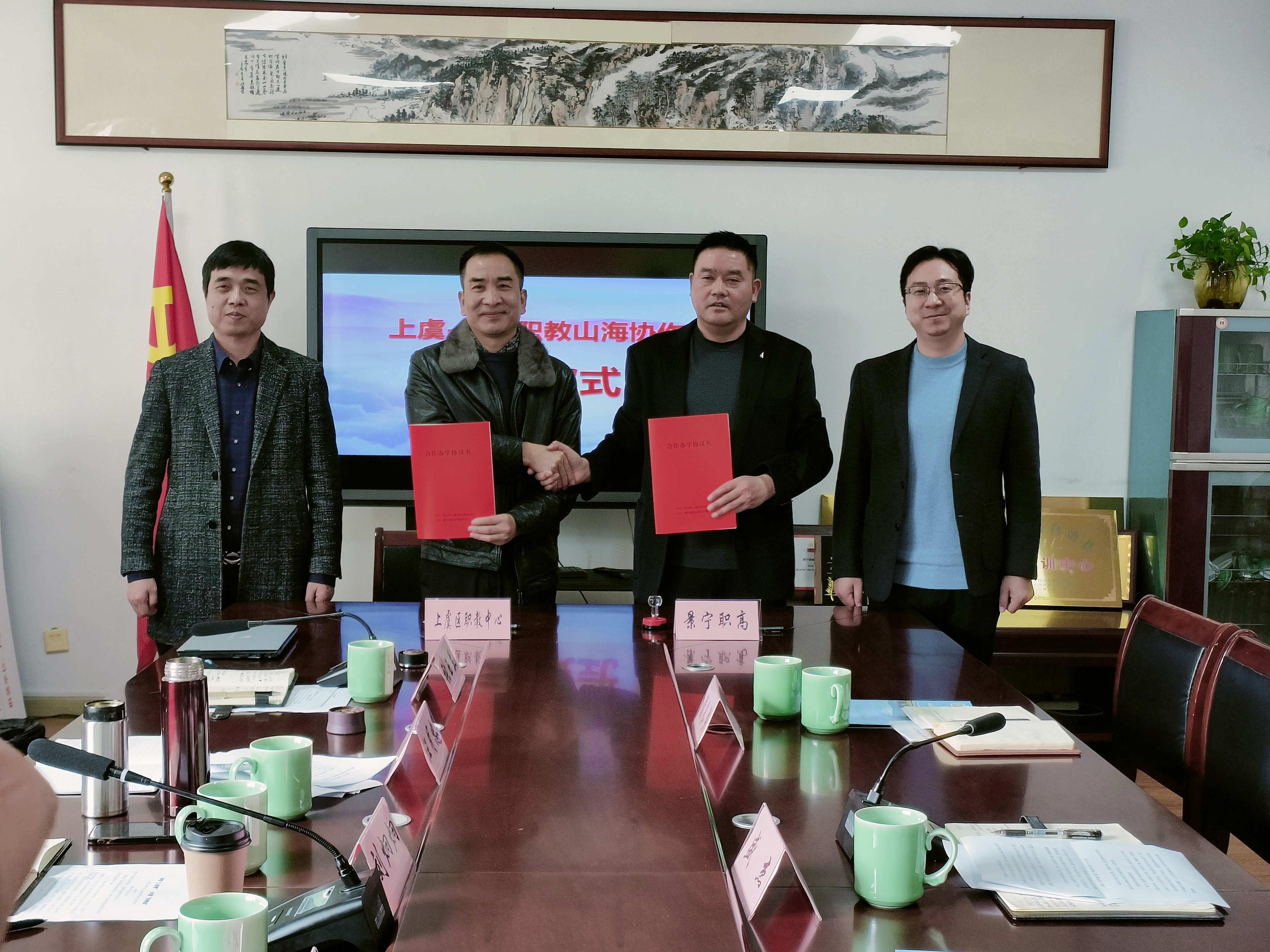 近日,紹興市上虞區職業教育中心黨委書記甘建國、校長房永亮等一行遠赴三百公里開外的麗水市景寧畬族自治縣,參加上虞、景寧職教山海協作活動,學校和景寧縣職業高級中學簽署了合作辦學協議,并捐贈了價值3萬元的實訓耗材。