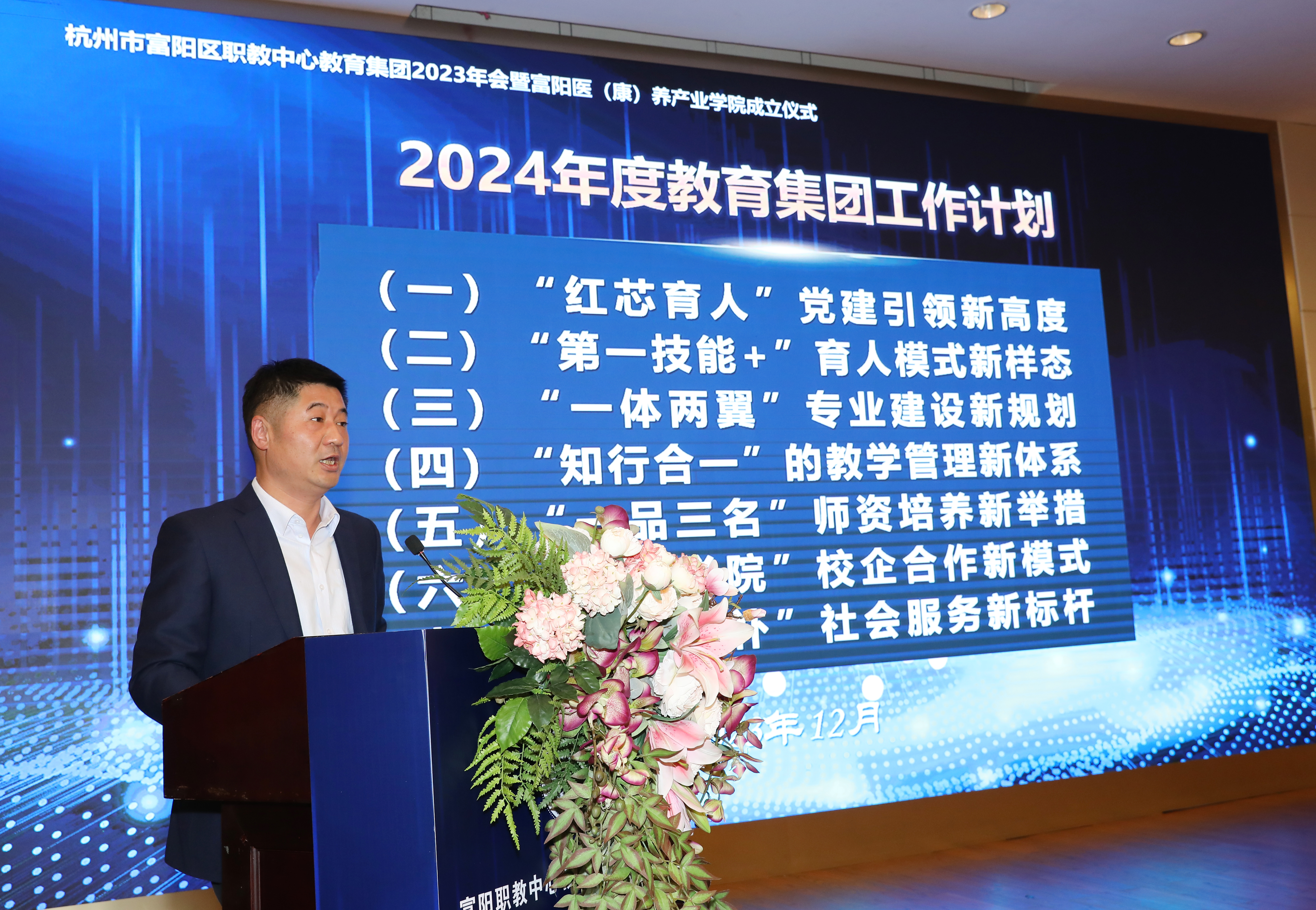 杭州市教育局副局長孫青峰對富陽職教中心醫(康)養產業學院成立表示祝賀,并就職業教育未來發展提出四點建議,一是加強能力建設,設置符合區域經濟發展需要的專業,保證師資隊伍提升,打造一支素質優良、結構優化隊伍,最終服務社會,為企業提供技術支持;二是提高校內實訓基地建設,讓學生在先進的技術機器、工藝中扎實打磨技藝;三是加強職教集團建設,以行業協會、中職為紐帶,共同推進職業教育發展;四是推動產教融合平臺建設,賦能產業、集團、學生、教師,特別是多方聯動培育醫(康)養人才。