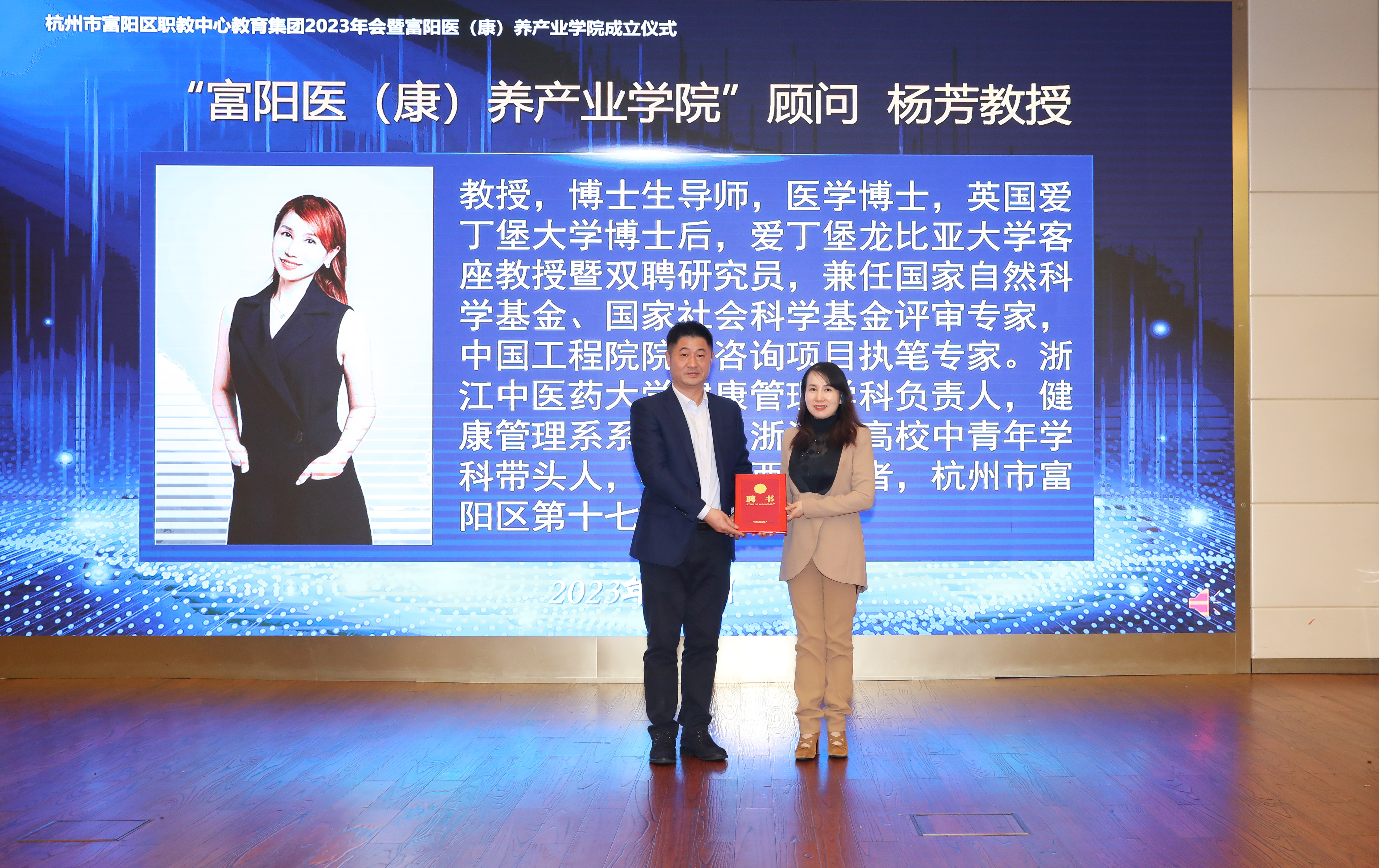 活動現場,舉行富陽醫(康)養產業學院共同體授牌、顧問聘書頒發儀式,浙江中醫藥大學教授、博士生導師楊芳,杭州夢想田園農業開發有限公司總經理宋輝,省教育廳職成教教研室主任崔陵作觀點報告。據悉,健康中國戰略背景下,我國醫養醫師人口缺口較大,結合富陽打造健康旅游這一發展要求,職教中心成立醫(康)養產業學院,為推動富陽生命健康產業發展,促使區域一體化合作更緊密、決策更科學、運行機制更靈活具有重大現實意義。