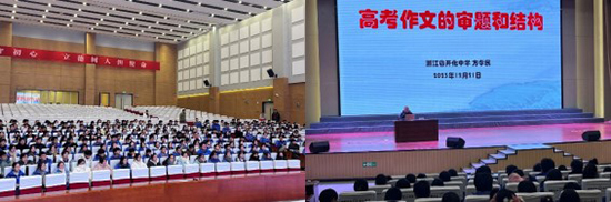 下午,方孝民老師在千人報(bào)告廳為全體高三學(xué)生帶來(lái)了一場(chǎng)關(guān)于“高考作文的審題和結(jié)構(gòu)”的講座。從審題到結(jié)構(gòu)布局,方老師以實(shí)例為高三學(xué)生“做一點(diǎn)調(diào)整”,再以一個(gè)“支架”,總結(jié)出“一元”“二元”“三元”的作文結(jié)構(gòu),培養(yǎng)學(xué)生的寫作思辨意識(shí)。