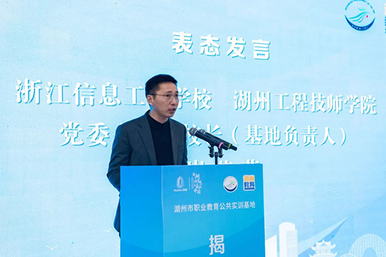 下階段,為進一步服務區域產業經濟發展,培養高技能技術人才,學校黨委書記、校長崔燕榮作為本公共實訓基地負責人,在揭牌儀式上作了表態發言。他表示,學校將按照《長三角(湖州)產業合作區職業院校建設和人才培養培訓方案》規劃部署,依托政府指導和聯盟合作、進一步深化實訓基地暨長合校區建設,服務產業發展。一是完善機制,努力打造實訓基地運維樣板。二是橫縱聯合,合力擴充技能人才供給增量。作為學校長合分校區,依托實訓基地,學校將持續深化與湖職院等高校合作,擴大社會培訓體量。三是產教融合,悉力服務產業升級提供支持。為長合區產業發展和湖州經濟社會發展貢獻更多職教力量。