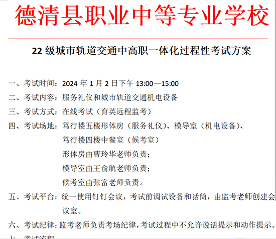 1月2日,德清職業(yè)中專烹飪旅游系依據(jù)浙江育英職業(yè)技術(shù)學(xué)院的要求開展了22級城市軌道交通運(yùn)營管理專業(yè)中高職銜接過程性考核,旨在促進(jìn)中高職教育的有效銜接。