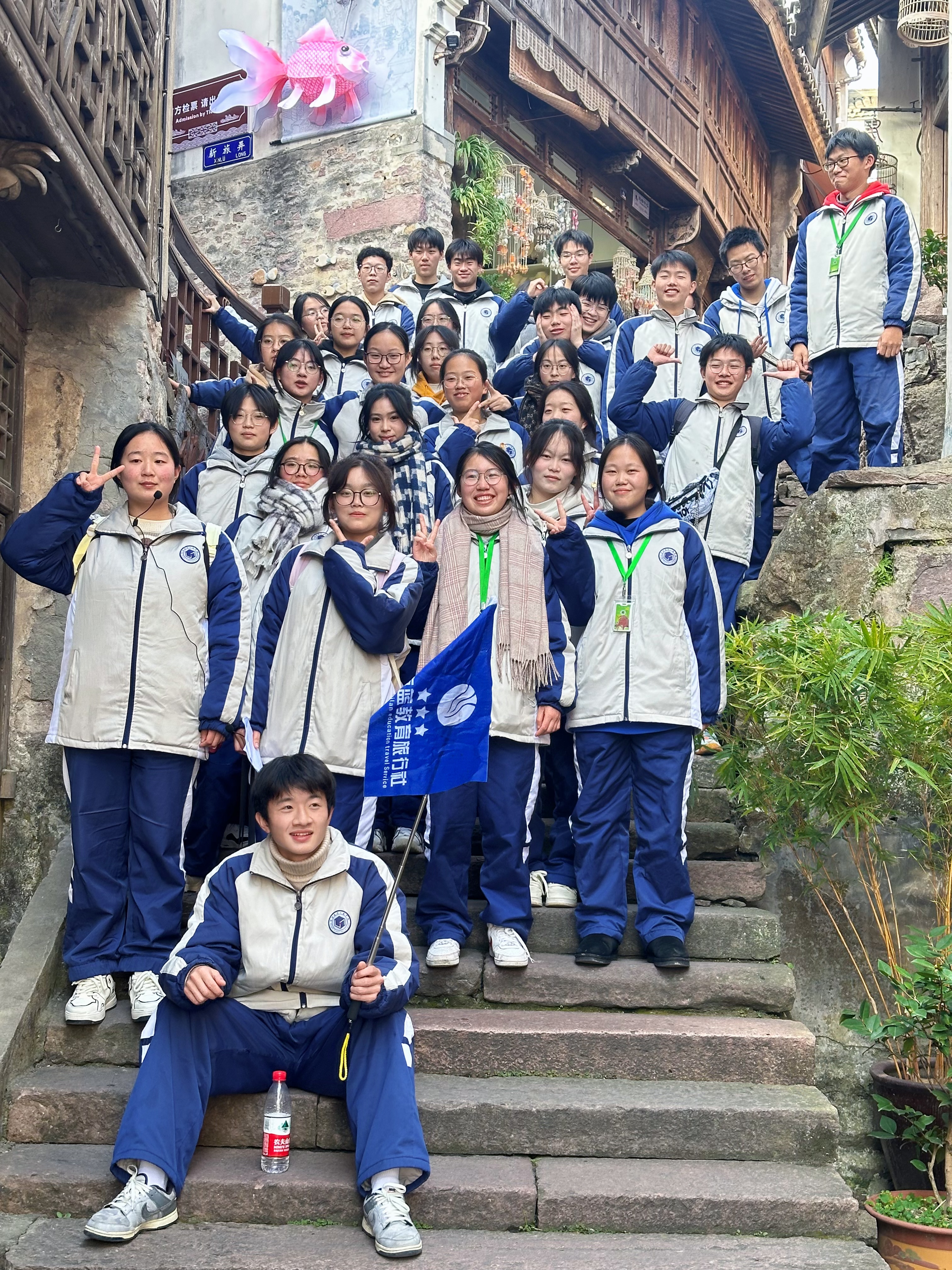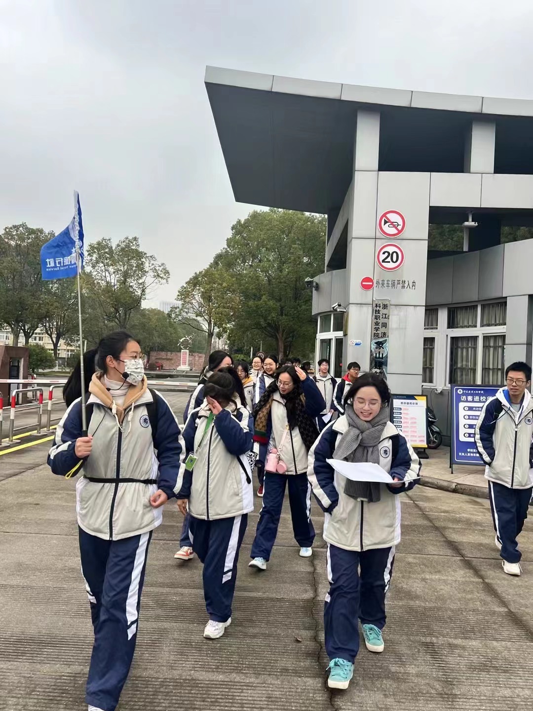 1月3日,寒風凜冽,卻未能減退寧波建設工程學校21導游班的學生們的熱情。他們手執導游旗,佩戴擴音器,跟隨專業老師走進象山影視城和石浦漁港古城親身體驗導游職業的魅力。